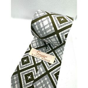 2Vintage SIMPSONS ROYAL WORTH Men's Necktie in a charming silver and green color combination. This classic tie from the royal worth brand is a timeless addition to any man's wardrobe. Perfect for adding a touch of sophistication to formal or business attire, this tie is sure to make a statement. Great for collectors or fans of vintage fashion, this piece is a unique and stylish accessory that will elevate any outfit.