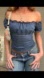 - The cuuutest denim top by Sirens! Featuring a ruffle neckline that can be worn off the shoulder, and a tighter corset style waist to snatch you in! Super flattering!