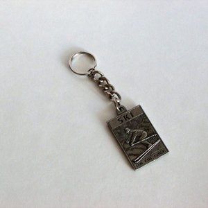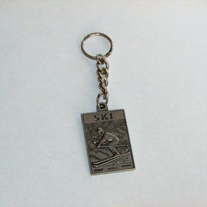 Awesome vintage keychain depicts a downhill skier. Quite detailed.
