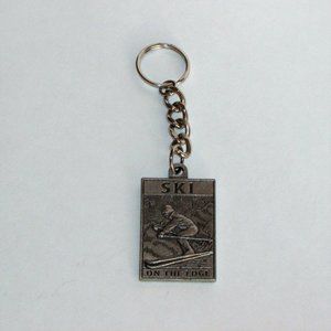 Vintage SKI ON THE EDGE SEAGULL PEWTER Key Ring Keychain 1997