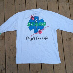 Vintage STARS Flight For Life Long Sleeve Tee - White Graphic Shirt L/G