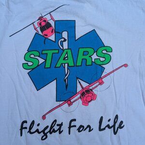 Vintage STARS Flight For Life Long Sleeve Tee - White Graphic Shirt L/G