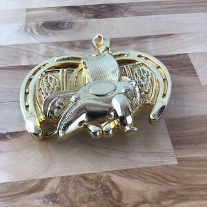 Vintage Saddle Buckle Belt Rodeo SW Gold Equestrian Horses