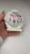 Vintage ceramic shell-shaped vase or posy pot with flat, footed base for stability.Made of ceramic. Adorned with a vibrant and intricate multi-coloured floral decal ,finished with gold-gilt trim along the scalloped rim and the base, adding a touch of elegance.