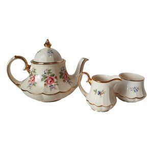 For your consideration is a vintage Sadler floral porcelain teapot and cream and sugar set, made In England.