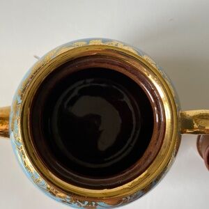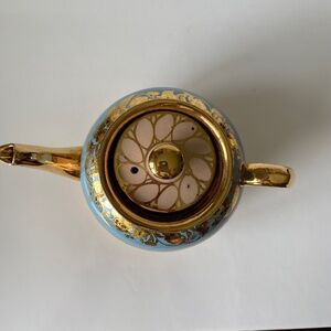 Vintage Sadler Pottery Teapot Made in England Gold Blue and Peach Signed