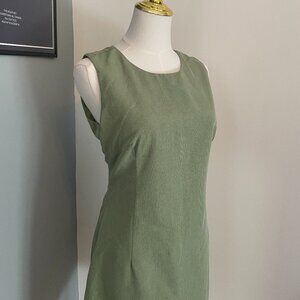 Details: Structured, preppy, mod, vintage sleeveless shift dress. 1960s style, but likely from the late 1990s. No stretch, zip up back, hits at about mid-thigh/just above the knee.