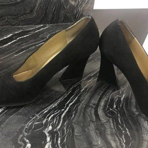 Vintage black velvet Saint Laurent block heel
