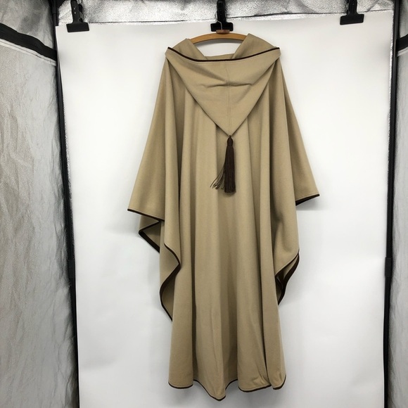 Vintage Saint Laurent Rive Gauche Tan drape Cape oversized hood 1970s Moroccan