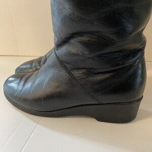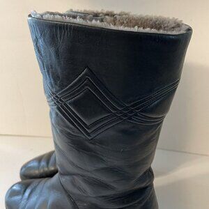 Vintage Salamander Lambskin Boots Womens 6 Black Leather German Winter Fur Lined