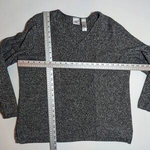Vintage Salt Pepper V Neck Long Sleeve Knit Sweater Women Size 1