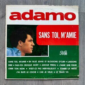 Cover art includes a portrait of Adamo on the front and a monochrome image on the back, adding to its mid-century aesthetic appeal. A perfect addition to any vinyl collection or gift for fans of classic French music!