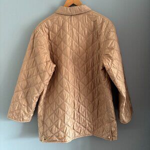 This is a really beautiful item, perfect for early- late fall! It's a muted golden ochre quilted jacket by Salvatore Ferragamo in near perfect condition.