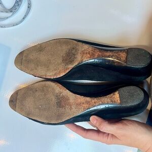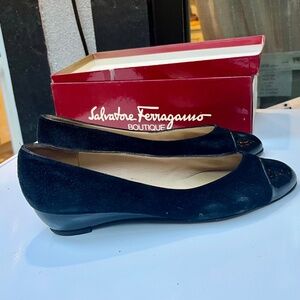 Vintage Salvatore Ferragamo Suede Patent Leather Toe & Low Wedge Heels size 9.5