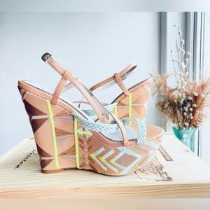Vintage Sam Edelman Wedge Platform Mozaic Strappy Sandals