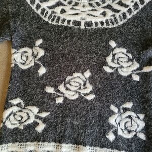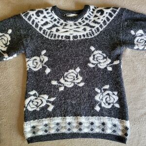 Vintage sweater in very good used condition. Rose design, shoulders pads, material tag is worn but feels like a wool blend.