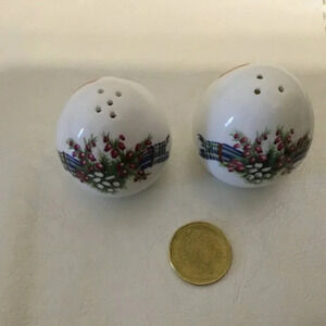 Vintage Sandford Salt and Pepper Egged Shaped Milk Thistle and Tartan Ribbon Set