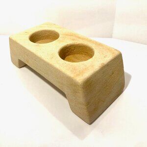 Earthy sandstone tealight candle holder. Approximately 7" long. 2" high. Simple lines, sleek design. Vintage. Creates warm mood for earthy decor. Minimalist, looks great paired with plants.