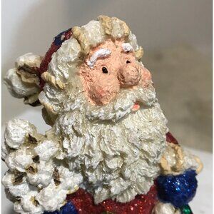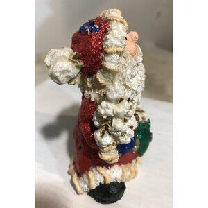 Vintage Santa Claus Figurine Christmas Decoration 4" Hand-Painted Glitter Resin