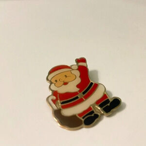 Vintage Santa Claus Pin Red White and Black Enamel Waving Santa Claus Brooch