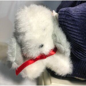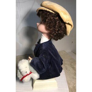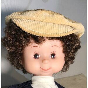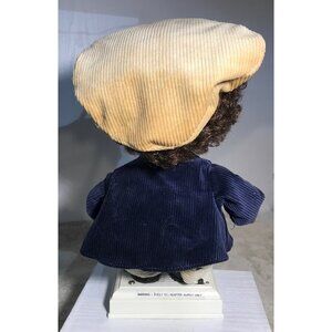 This vintage Santa's Best doll features a charming doll dressed in a corduroy jacket and hat, holding a plush animal accessory. A collector's delight, it stands out with its retro style and intricate detailing. Perfect for display, it brings nostalgic charm to any doll collection.