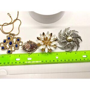 Vintage Sarah Coventry jewelry, 3 brooches and a necklace