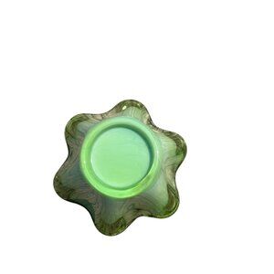 Vintage Sasaki Green & White Cased Glass Petal Ashtray Dish