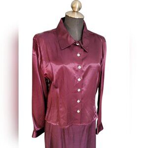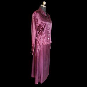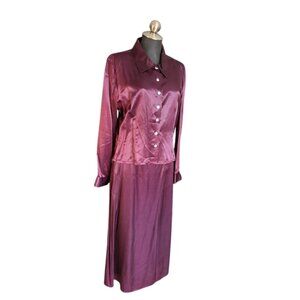 Vintage Satin 3 Piece Pant Suit & Skirt Set Plum Purple