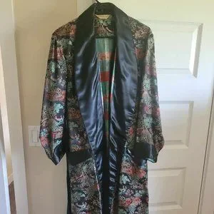 Beautiful and delicate vintage satin robe from the brand Majestic, manufactured in Canada. Time to get your inner Hugh Hefner out!
