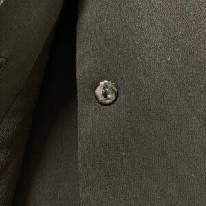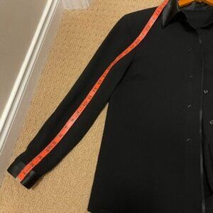 This vintage button-up blouse features a sleek and minimal silhouette, elevated with a satin-trimmed collar and cuffs. Designed with a subtle sheen and hidden button closure for a polished, understated finish. A versatile piece that transitions seamlessly from professional wear to an elegant evening look.