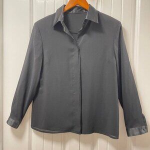 Vintage Satin Trim Hidden Button Blouse Black