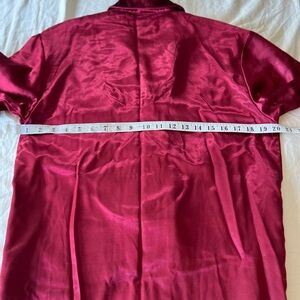 Vintage Satin Velvet Trim Pyjama Shirt Dress S Ruby