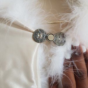 Vintage Satin and Feather Cape, Vintage White Fur Wedding Stole, Fur Shawl