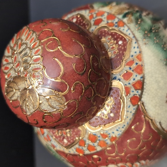 Vintage Japanese Satsuma hand-painted pottery decorative urn/ginger jar.
