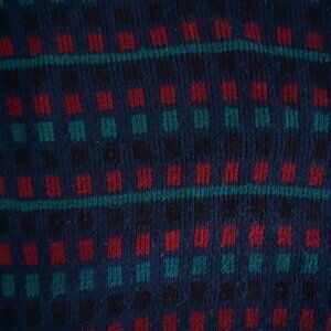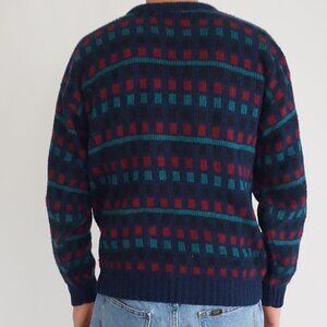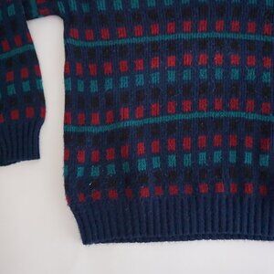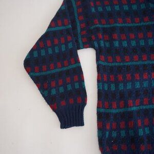 Vintage Scandia Navy Teal Red Wool Patterned Crewneck Sweater Retro Eclectic M