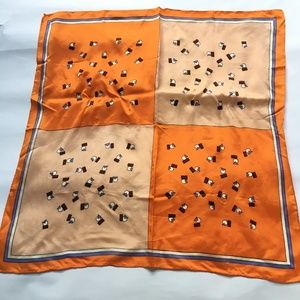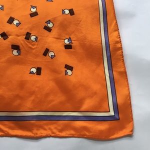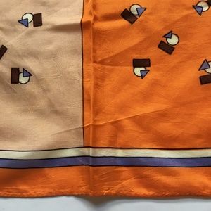 Vintage Scarf 28" Square Hand Rolled Edge Orange Beige Purple Vintage