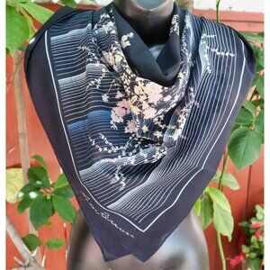Vintage Scarf Designer Jim Renoir Black Floral Scarves O1