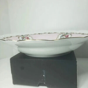 Vintage Schirnding Bavaria porcelain A La Main Peint T.Limoges round pink floral serving dish.