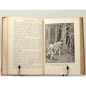 This book is a vintage school reader, "Atlantic Readers: Book Two High And Far," edited by Randall J. Condon, and published in 1927 by Little, Brown and Company. It is intended for grade 5 students. It is a red hardcover book with gold lettering on the cover and spine. There are many charming illustrations, notes and a Vocabulary section in the back.