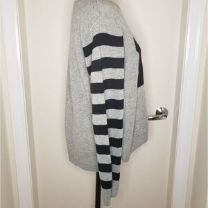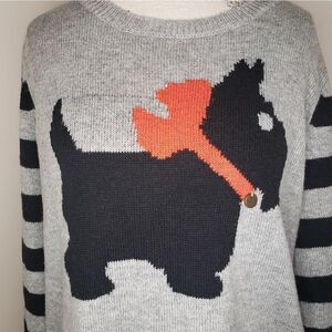 Silver grey & black stripes knit long sleeved jumper sweater with cute Scotty dog on the front, by Love Knitwear.