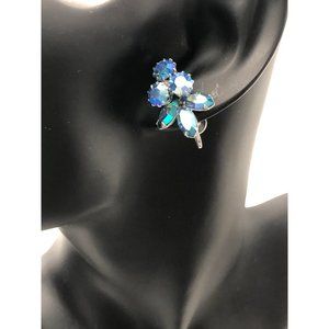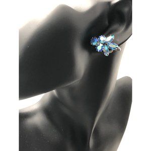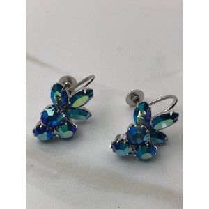 Gorgeous Sherman Earrings. Blue Aurora Borealis prong set crystals, with lots of sparkle and shine. Have screw back attachments. Vintage item. Measures 1" in length by 5/8" in width. Great for the Holidays and for the Collector of vintage Sherman pieces. Sherman pieces are high quality costume jewelry. In very good condition. No returns or exchanges.