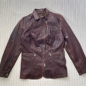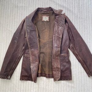 Vintage Scully Brown Leather Motorcycle Jacket with Studded Accents