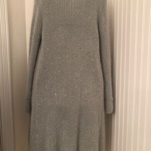 Size small fits larger length 41” PTP 18-22” is seafoam green covered in beads and sequins like a dusting of ice. Beautiful paired with moss greens or whites.