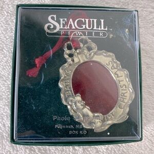 Vintage Seagull Pewter Baby’s 1sty Christmas Oval Picture Frame Ornament
