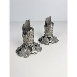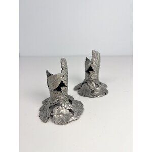 Vintage Seagull pewter tapered candle holder set - with wrapped leaves motif