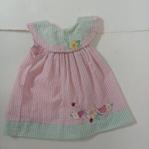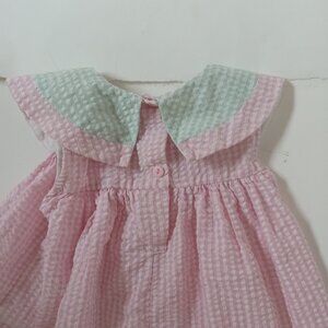 Vintage Sears Baby Pink Checkered Gingham Toddler Dress Sz 2T 24 Months Flower