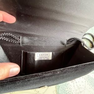 Vintage black velvet bag / purse with satin rosette made by Sears. Excellent condition. Measures 8" wide, 6" tall.