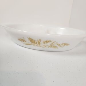 Vintage Sears Divided Baking / Serving Vegetable Casserole Dish Wheat Pattern 1 Quart Ovenware