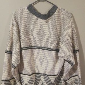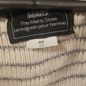 Vintage Sears Mens Wool Blend Cream & Gray Grandpa Cardigan Sweater Cobain Style