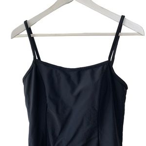 Vintage Sears Tradition Modest Black One Piece Skirted Swimsuit Size 12 Retro